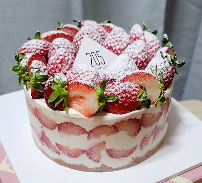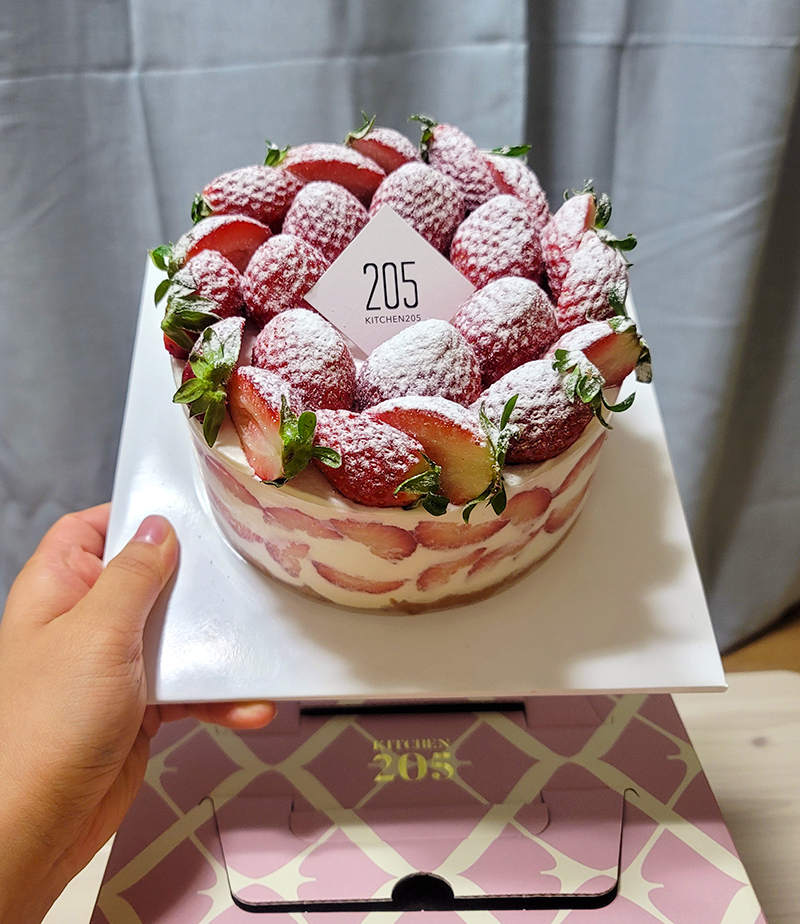 키친 205 딸기밭케이크를 한입 딱 먹는데!