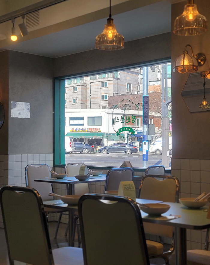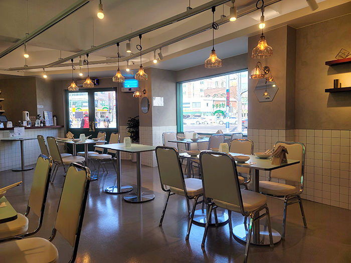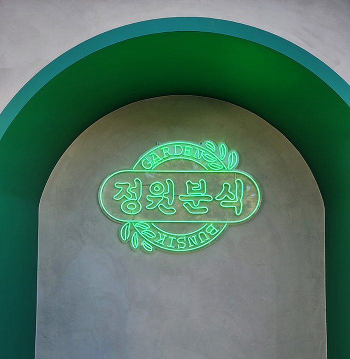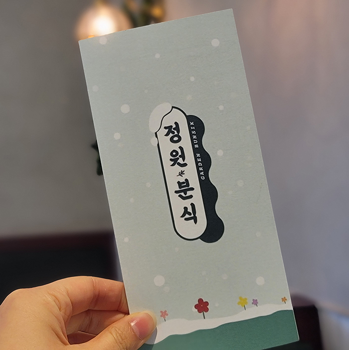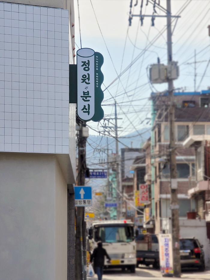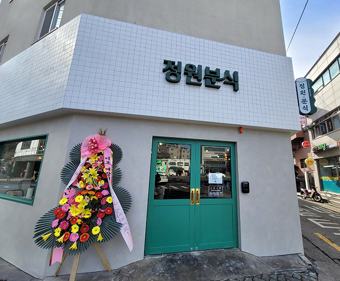 흰색 타일로 된 건물과 에매랄드 청록색? 의 정원분식이 눈에 띈다. 11시 오픈인데 조금 넘어서 도착하니 1등으로 들어왔다. 가게 내부는 분식집 치고는 넓은 편!