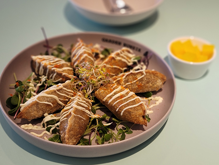 가장 먼저 나온 갈비만두 튀김! 맛있는 갈비만두를 튀기기까지 했으니 맛이 없을 수가 없겠지?! 갈비만두 7개와 약간의 채소로 플레이팅도 예쁘게~ 나왔다.