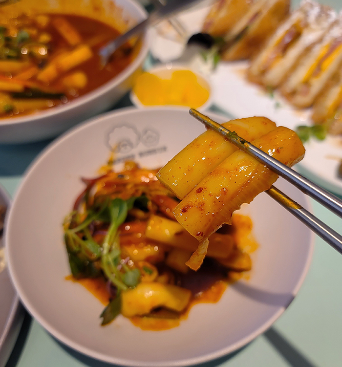 중간 굵기의 짤막한 밀떡이다. 쫄깃쫄깃 씹는 맛이 굿! 엄마는 떡이 좀 부담스럽다는 의견을 주셨다. 좀 더 얇은 떡을 했으면 좋았을 거 같다는.! 정말 듣고 보니 얇은 떡이나 누들 떡으로 했으면 짬뽕 떡볶이에 더 어울렸을 수도!