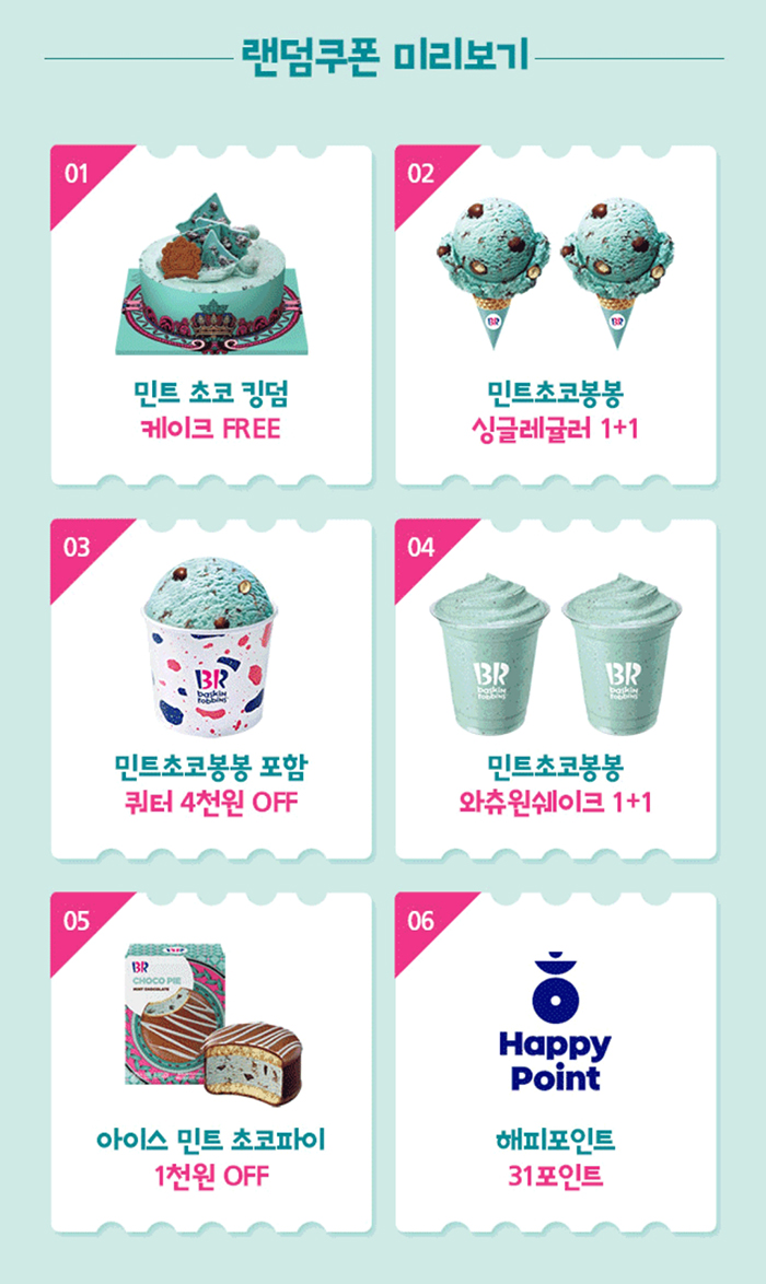 다양한 민트초코봉봉 상품 쿠폰을 준다!