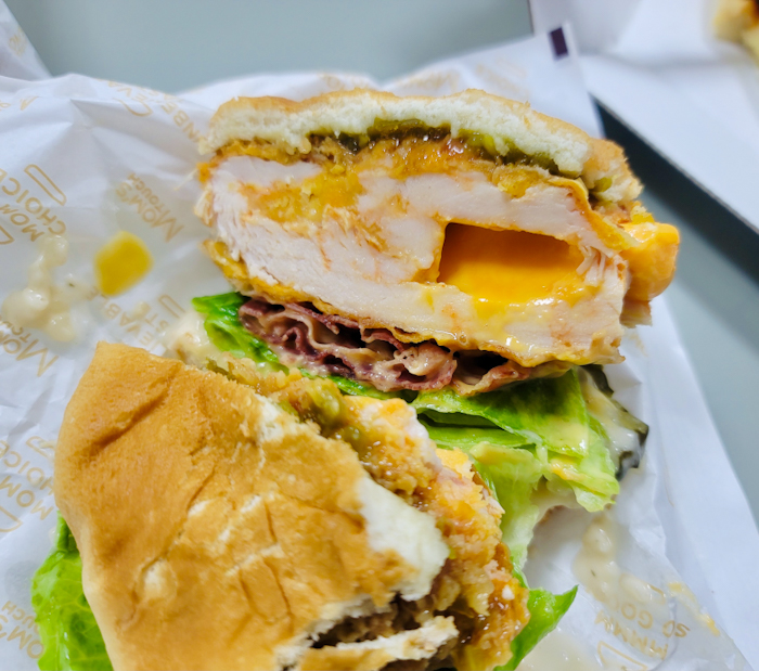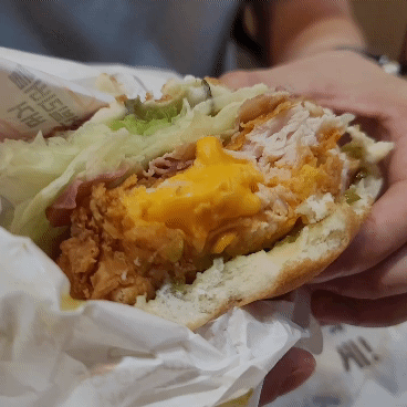 맘스터치 치킨버거 안에 체다치즈가 주르륵??
