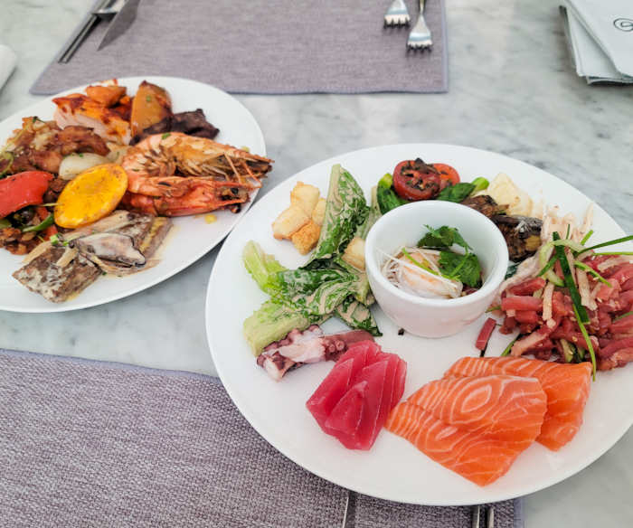 해산물과 육류, 샐러드, 중식이 다 골고루 합이 좋다