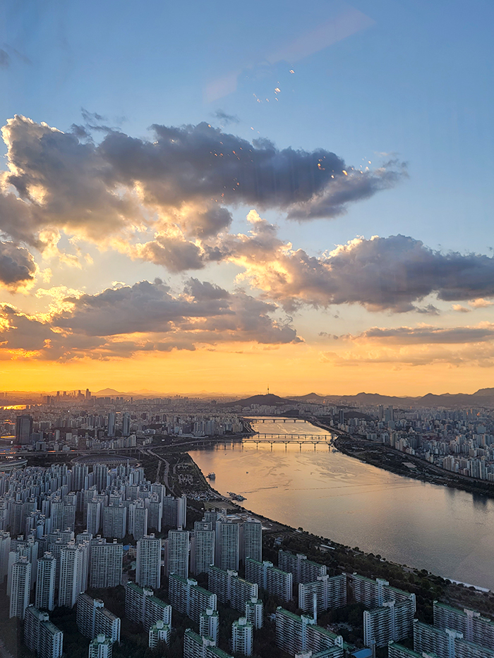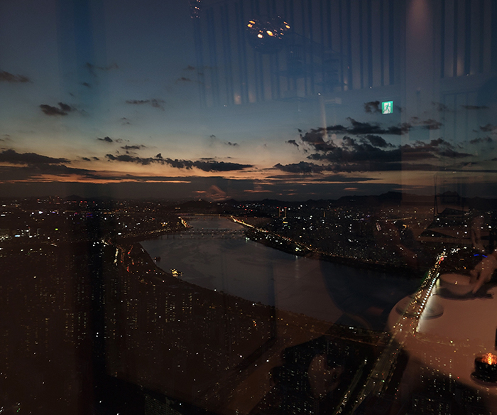 여기서나마 큰 창 너머로 보이는 멋진 뷰를 볼 수 있었다