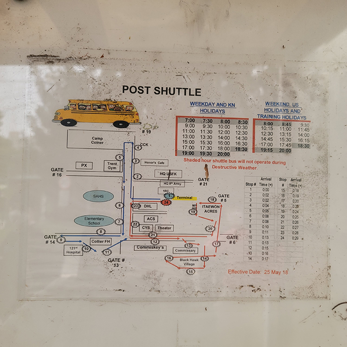 용산공원 미군기지 숙소안에 있는 버스정류장 ㅎㅎ