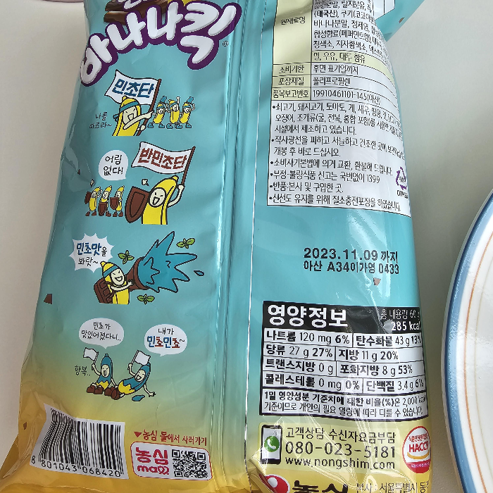 마지마으로 흐린눈으로 보고 지나치면 될 민초 바나나킥 영양정보 열량