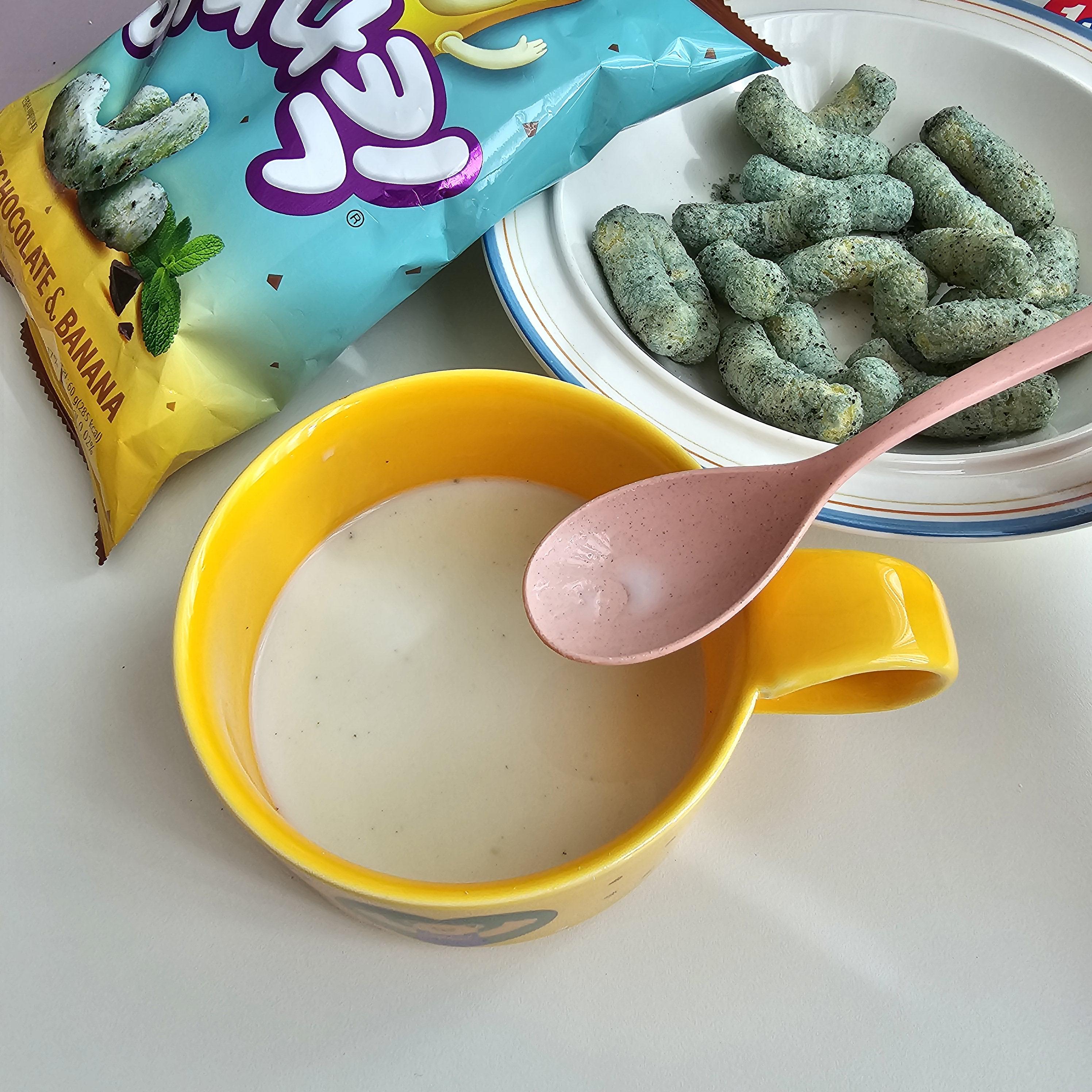 또 그냥 과자만 먹고 끝낼수없지..! 바나나킥 우유에 말아먹으면 얼매나 맛있게요~?