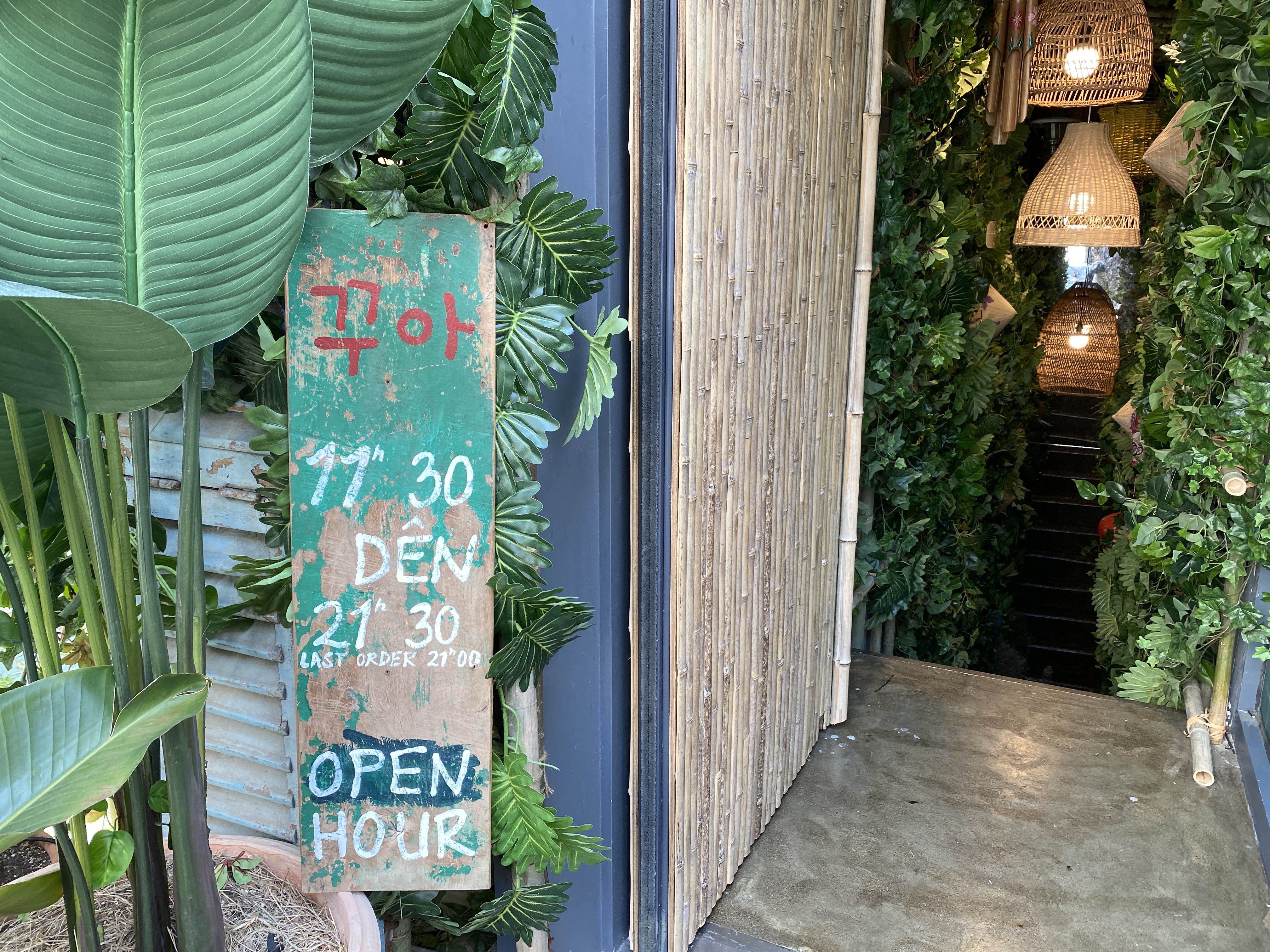 골목골목 구경하다가 눈에 띄는곳을 발견! 입구 내려가는 계단부터 너무 이쁘게 꾸며놔서 바로 선택! 쌀국수와 분짜, 반세오 등의 메뉴가 있는 베트남 음식점 꾸아! 다른 식당들 처럼 밖에 웨이팅이 안보이길래 바로 먹을 수있을 줄알았는데