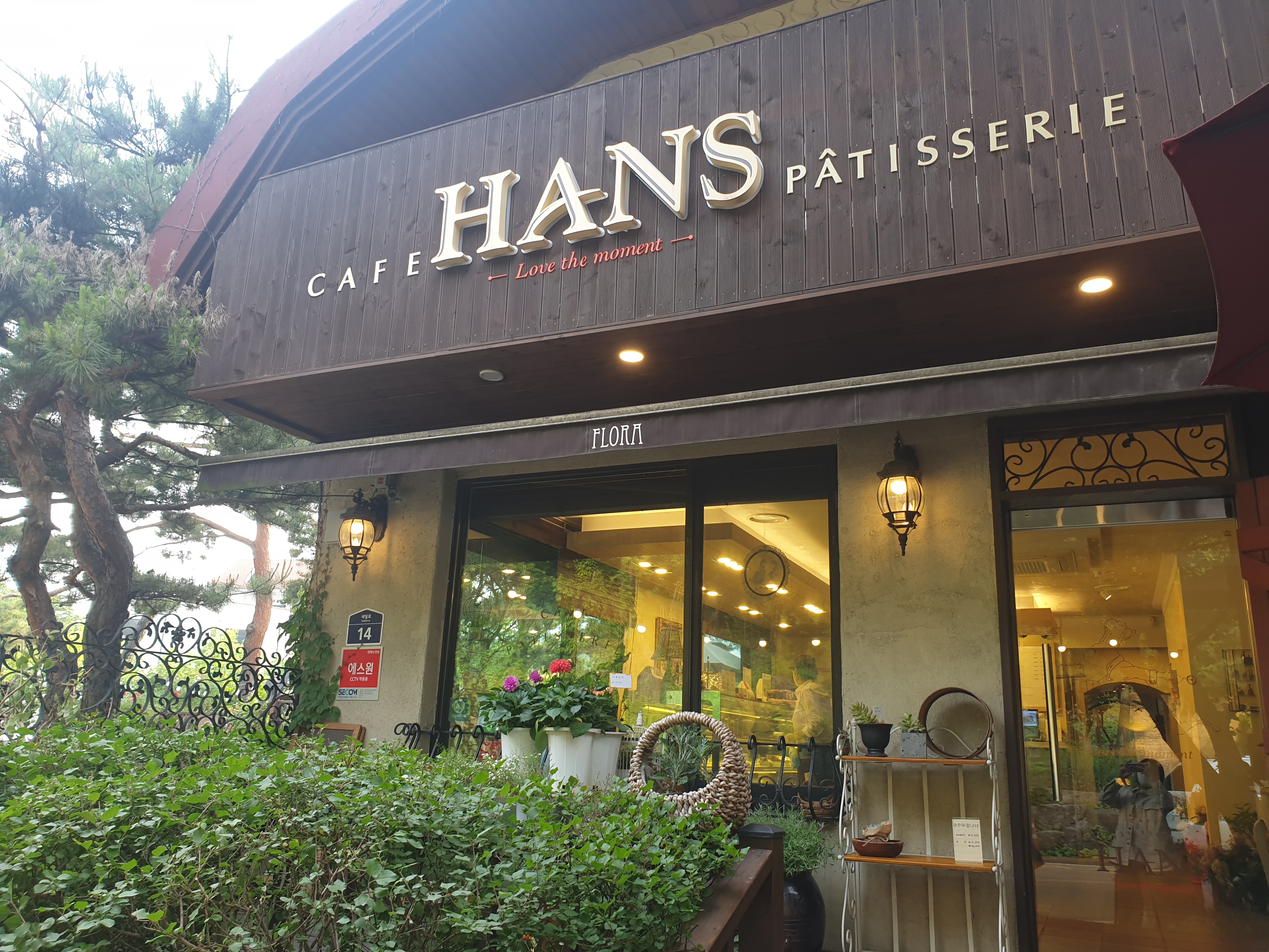 주차를 하고 옆쪽으로 걸어오면 카페 입구가 보인다. 입구엔 한스케익 카페 간판이 보인다 ㅎㅎ 입구부터 예쁘게 꽃들과 풀들로 꾸며져있다.