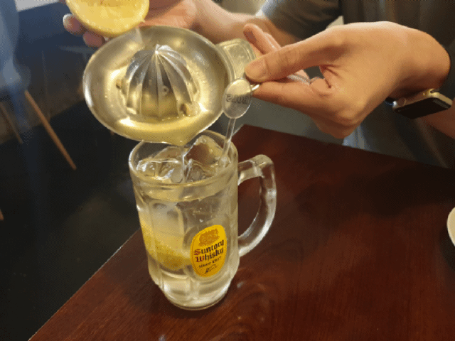 오랜만에 왔으니 텐동만 시키기 아쉬워 알쓰이지만 하이원을 시켜 마시며 기다렸다. 레몬을 너무 뿌려서 거의 레몬즙 먹는 기분이었다...