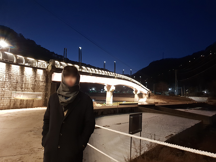 입구까지 들어간게 아쉬워 출렁다리 입구 옆쪽으로 길이 나있길래 들어가 해가 지기전 밑에서 출렁다리와 사진을 찍었다.