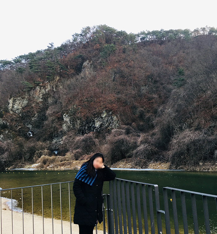 옆으로 계곡물이 흘렀는데 물에 깊고 넓어 여름철 계곡 물놀이로 놀기 딱 좋게 되어있었다. 추운 겨울에 와서 산이 휑~하지만 여름이나 가을에 오면 정말 멋진 풍경일듯 했다.