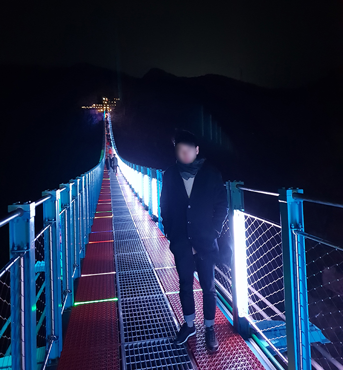 한가지 이벤트가있었던건 출렁다리를 건너 반대편에 도착해서 야경을 보며 쉬고있을때 갑자기 모든 조명이 꺼지는 해프닝이 있었다.ㅋㅋㅋㅋ 사람들다 처음엔 어머! 하면서 깜짝놀라다가 산 위에서 온통 암흑이 되는 경험을 하니 다들 신기해하고 나름 즐겼던? 분위기였다. 다들 당연히 다시 켜질거라는 믿음?으로 우와 이거 일부러 이벤트로 꺼진건가봐~ 우리 못내려가 어떡해~하며 시끌벅적했다. 당연히 몇분뒤에 다시 모든 조명에 켜졌다 ㅎㅎ 아마 다리위를 건너던 분들은 정말 식겁했을듯 😨😆