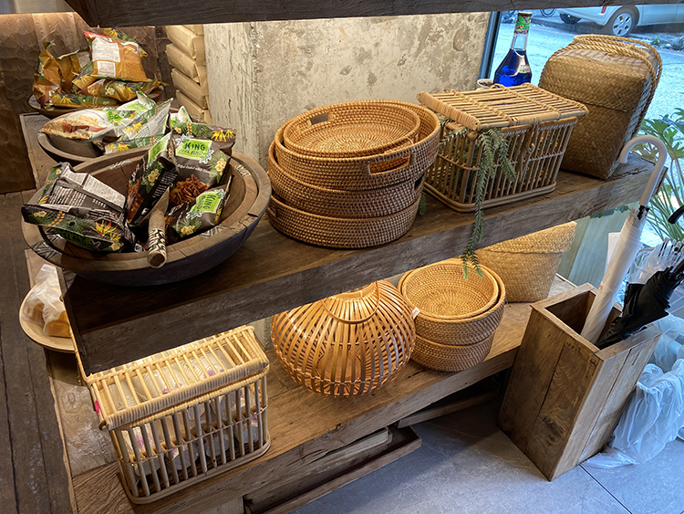 입구에 들어서자마자 라탄바구니, 라탄 가방, 라탄 트레이 까지 다양한 소품들을 판매하고 있었다. 생각보다 퀄리티가 좋았고 적은것 같으면서도 다양한 제품군을 전시해 두고있어 구경하는 재미가 쏠쏠했다. 나무 빨대? 이것도 라탄인가? 대나무? 암툰 빨대도 팔고있길래 요거 하나 집에 두면 나름 휴양지 느낌 나겠다~ 싶어 살까 고민하다가 구경만..ㅎㅎ