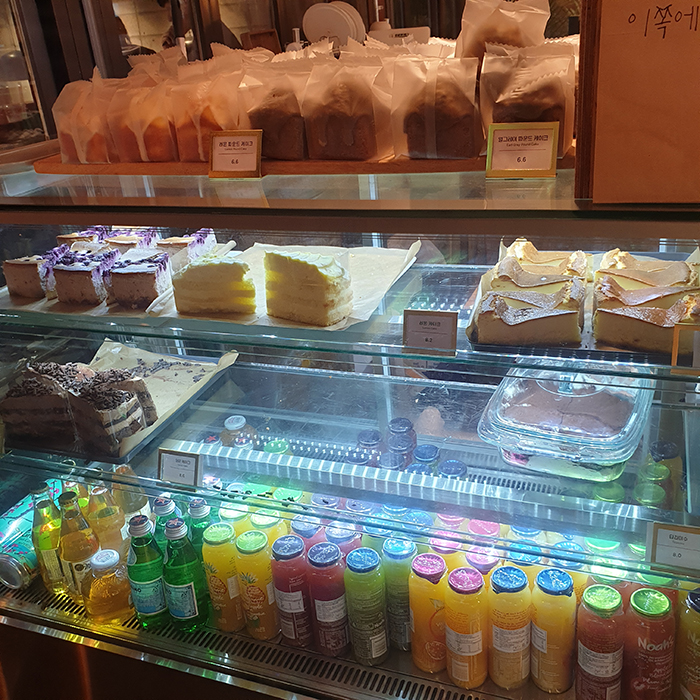 층마다 구경을 마치고 다시 주문을 하러 내려갔다 ㅎㅎ 점심먹은지 얼마 안되서 음료만 시켰다. 케이크 비주얼을 보니 그렇게 땡기는 비주얼도 아니긴했고..ㅎ 손님들이 많이와서 그런지 코로나 때문인지 다 일회용컵으로 음료가 나왔다. 그래서 음료 갬성컷은 건지지 못했다고한다 - ㅎㅎ