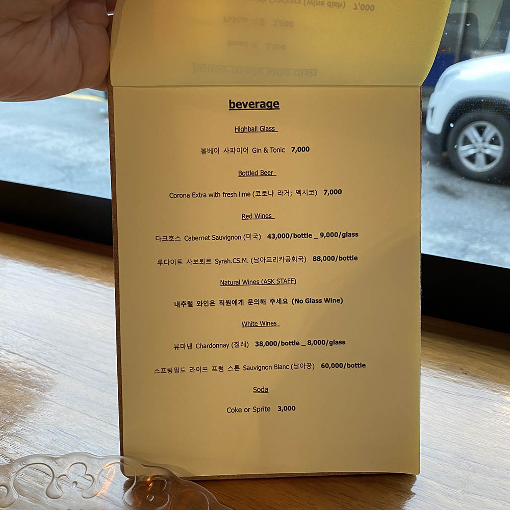 브레이크타임 후 6시부터 저녁타임 시작이라 뚝섬역 바로앞에 있는 블루보틀에서 시간을 좀 떼우다 5시쯤 팩피 앞으로 가보았다. 비도 오고 날씨가 안좋아 한시간전까진 웨이팅하는 사람이 없어보였다. 주변을 좀더 돌아다니다 20분? 30분쯤 다시 가서 문앞에 딱 서는순간 그담부터 한팀 두팀 와서 우리 뒤로 줄을 서기 시작! 와 쫌만 늦었으면 뒤로 밀려날뻔 ㅠ