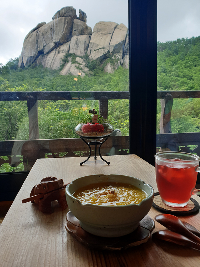 란야원에서 단호박식혜를 꼭 먹어야한다~ 많이 달지않고 고소담백하니~ 살얼음도 동동~ 크~~ 수바위를 보며 뭘 먹든 신선놀음이 따로 없겠다.
