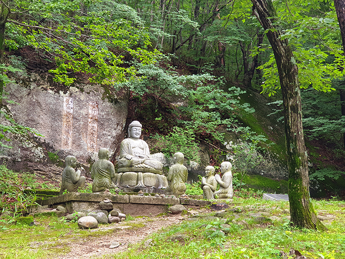 중간중간 불상과 돌에 세겨진 글귀들이 눈에 띈다. 높게 자란 나무들과 계곡에 물 내려가는 소리를 들으며 화암사까지 올라가는길부터 힐링이다~
