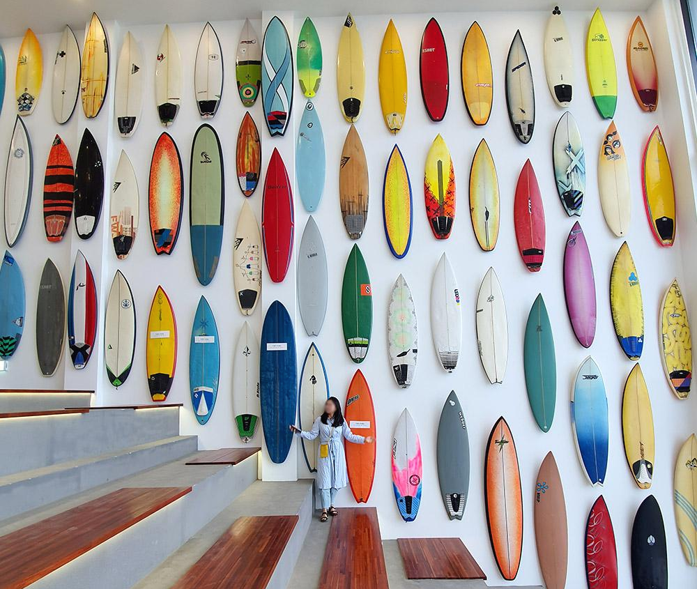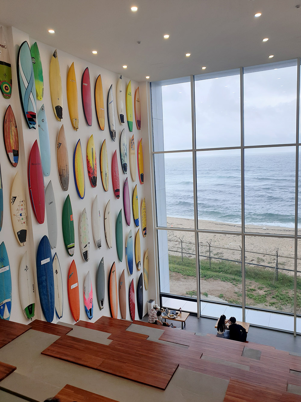 2층에도 꽤 자리가 많았다. 패밀리 단체석처럼 사각형으로 둘러앉는 공간도 있었고 서핑보드를 테이블로 활용된 자리도 있었다. 2층도 큰 통유리로 되어있어, 바다를 바라보며 여유를 즐기기 딱인 장소이다~!