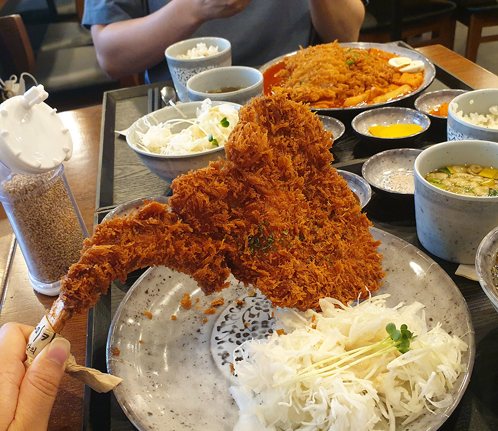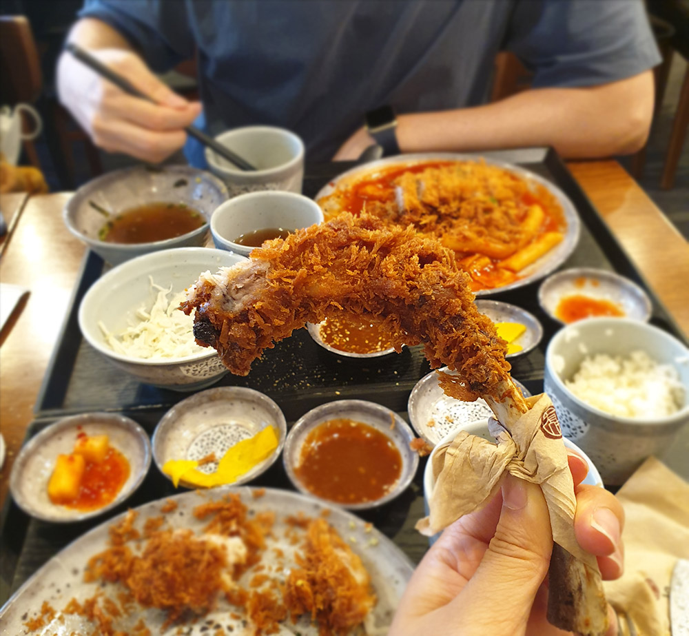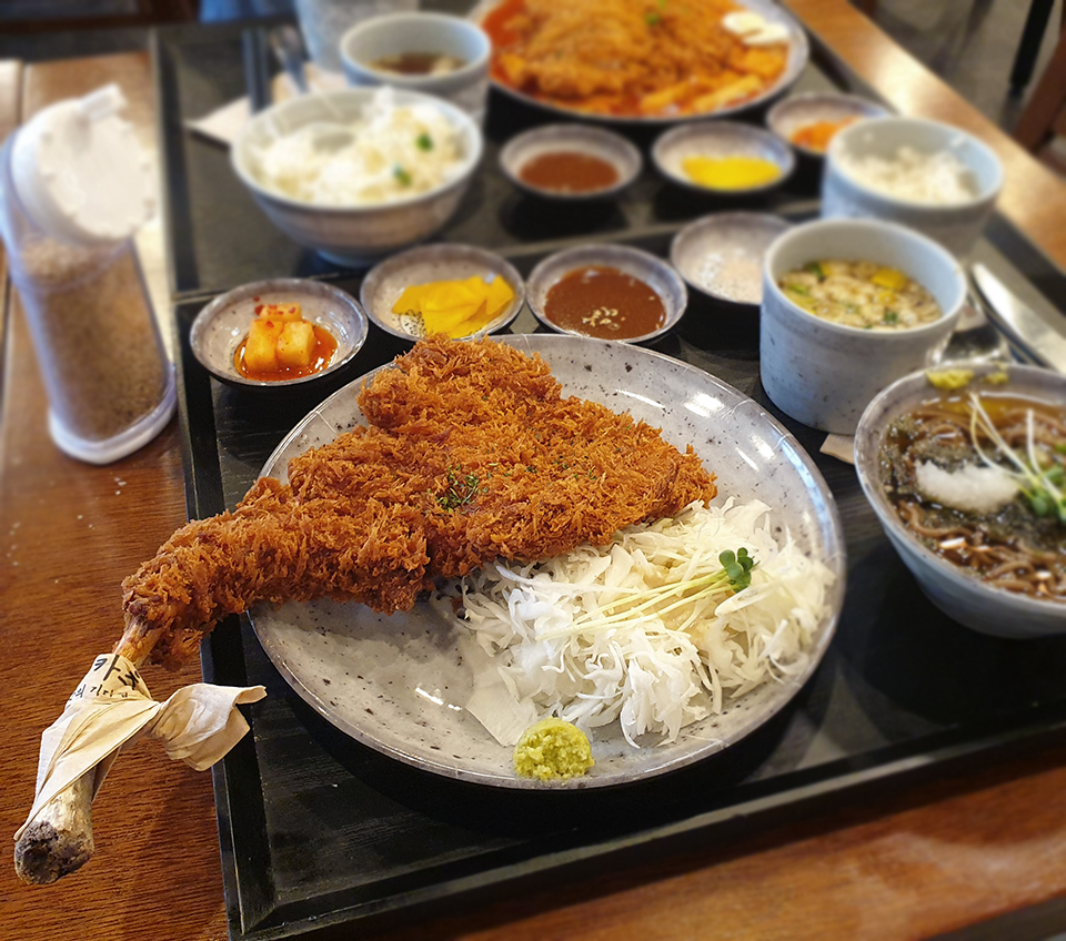정말 가성비 좋은 맛난 토마호크 카츠였다! 가격이 저렴한 편이라 우리가 갔을 때도 학생들끼리 온 테이블도 꽤 됐는데 모두 나처럼 토마호크 카츠 한 손에 들고 뼈까지 잘 뜯어먹고 있더라는..ㅎㅎ 튀김이 너무 바삭해 먹을 때 입천장 까지지 않게만 조심하면 될듯하다!