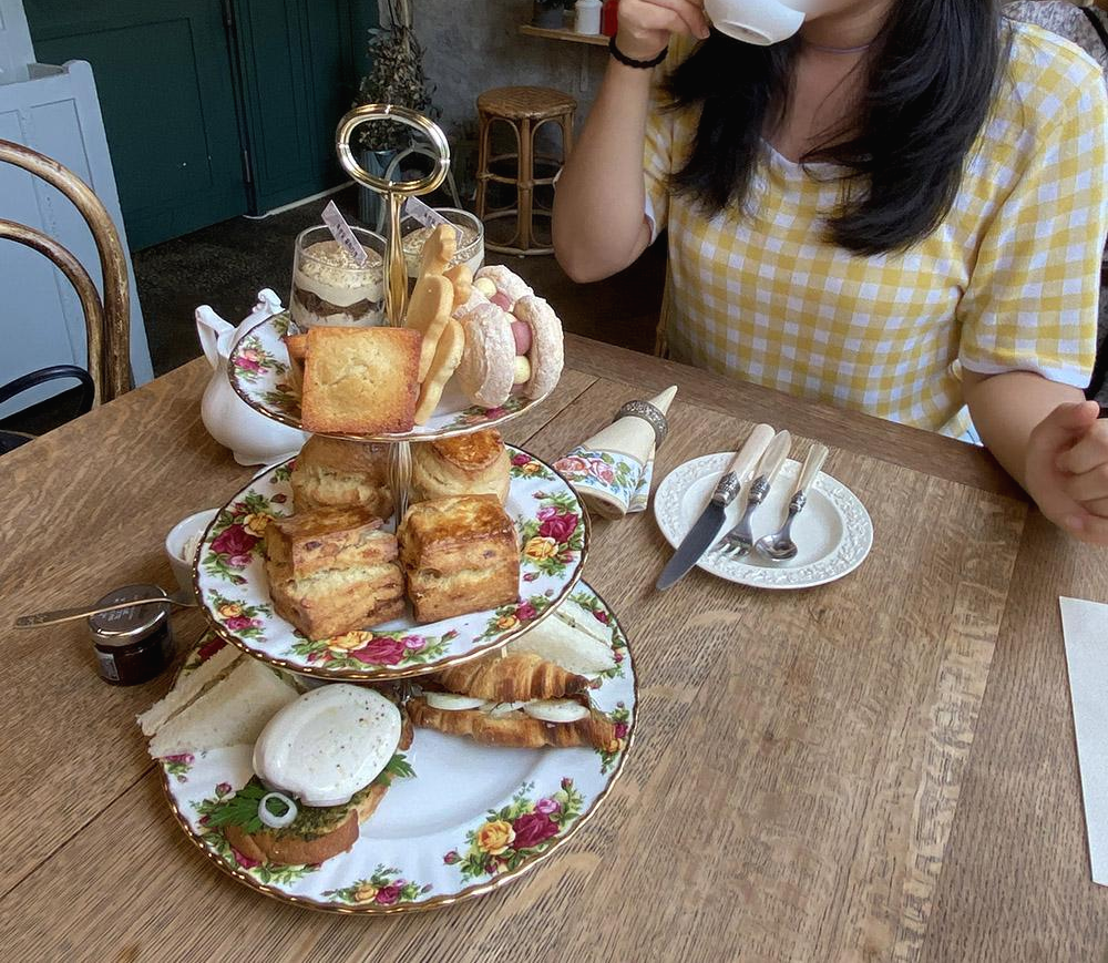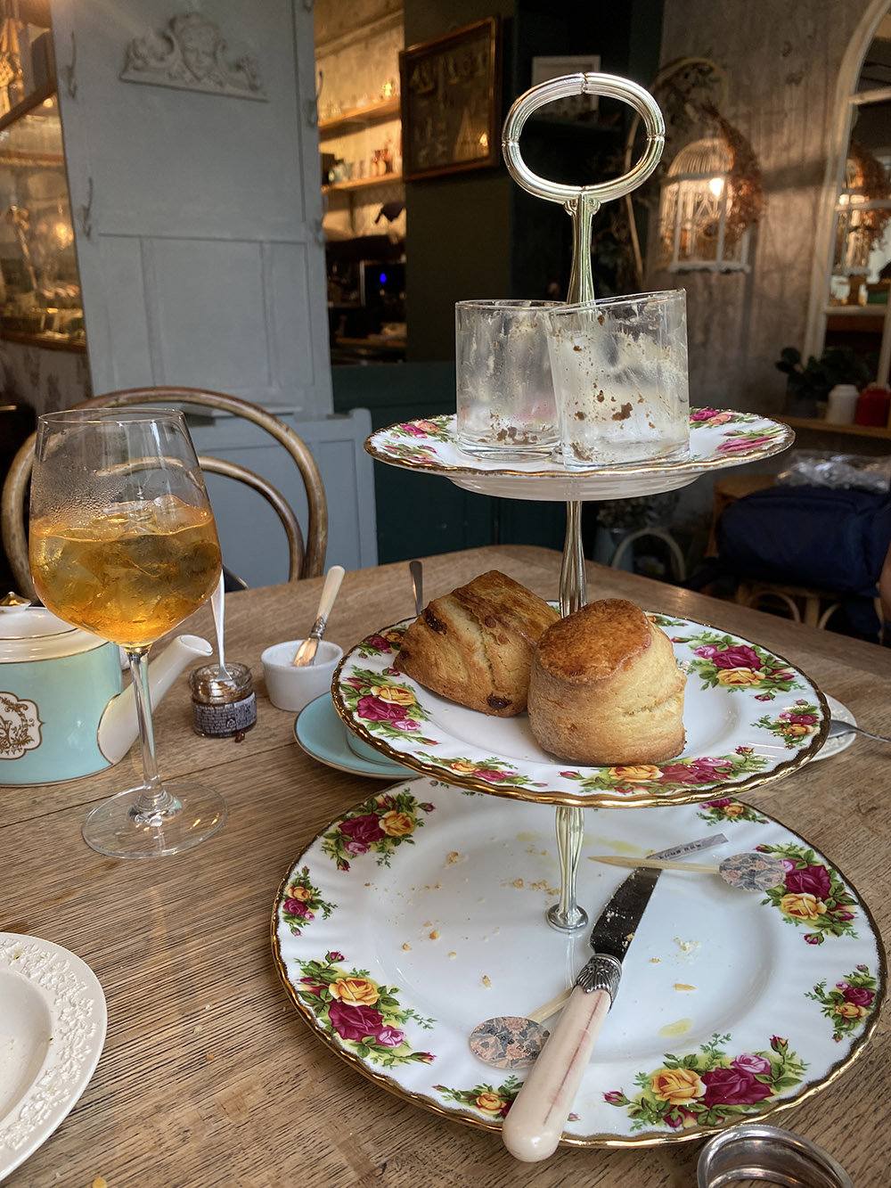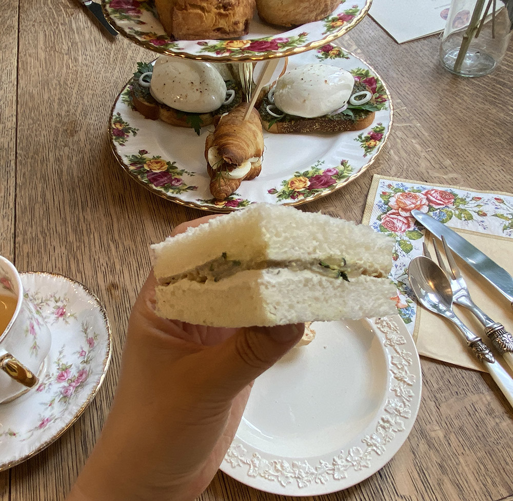 크로아상과 오픈샌드위치도 맛있었지만 처음 다쿠아즈와 쥬키니가 너무 강렬했다.. 맨 밑에 칸을 다 먹고 스콘을 먹을때 쯤 2번째 차를 골라 시켰다!