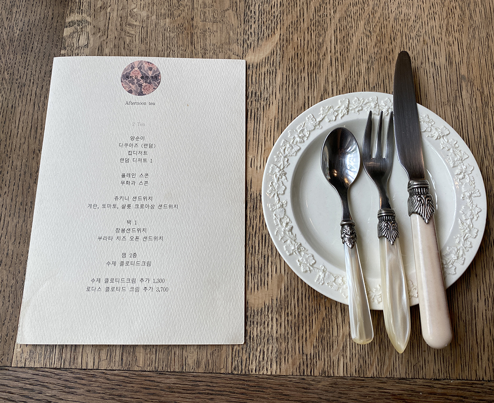 자리 안내 받고 설명을 해주시는데, 차는 따듯하게 먹으면 좋은 차, 차갑게 먹으면 좋은 차 두종류로 나눠 있었고 애프터눈티 세트에 한사람당 총 두번씩 차를 주문할 수있다.