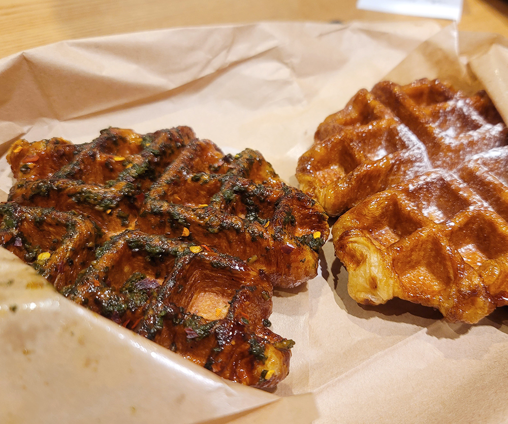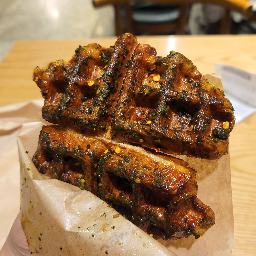 페퍼론치노가 뜨문뜨문 인사하는 맛인데 생각보다 강하지 않았고 바질과 크로플 두개의 맛을 헤치는 맛이 아니라 적당히 잘 어울린다.