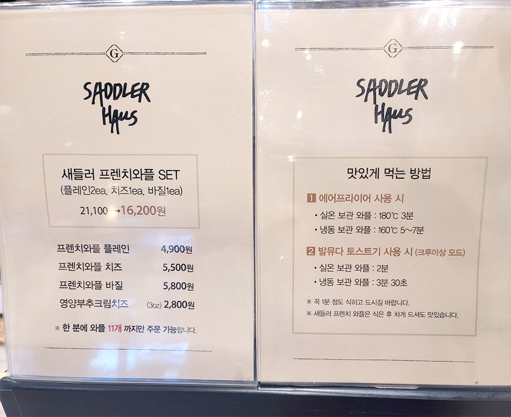 카운터쪽에 이렇게 맛있게 먹는 방법도 설명되어있다. 심지어 에어프라이어 사용시 / 발뮤다 토스트기 사용시 나눠 설명되어있다 ㅎㅎ