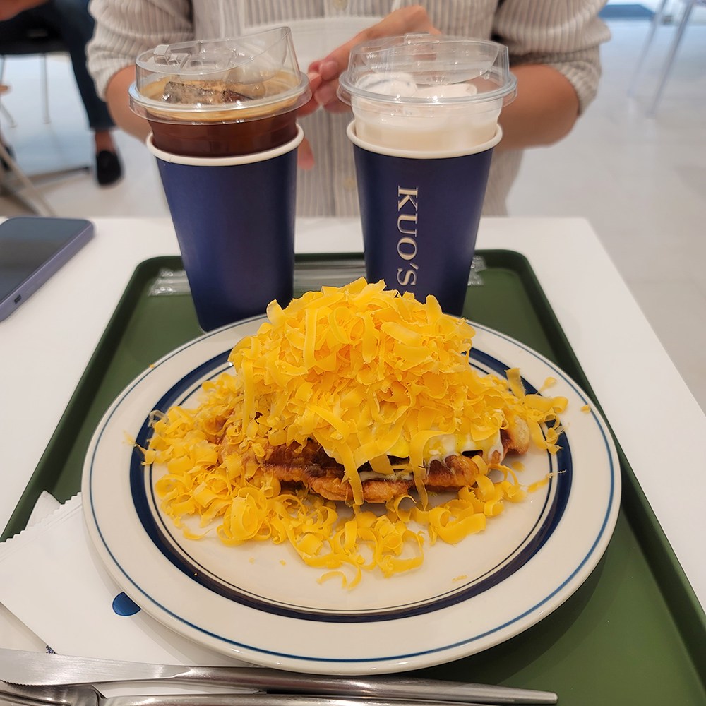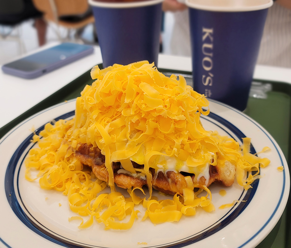 노오란 치즈가 듬뿍 뿌려진 크로플