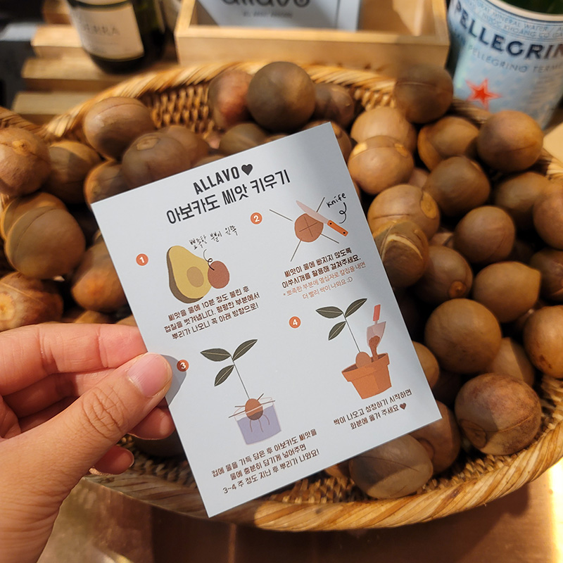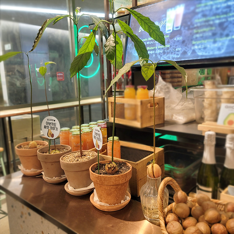 주문하는곳 옆에 이렇게 많은 아보카도 씨가 있었고