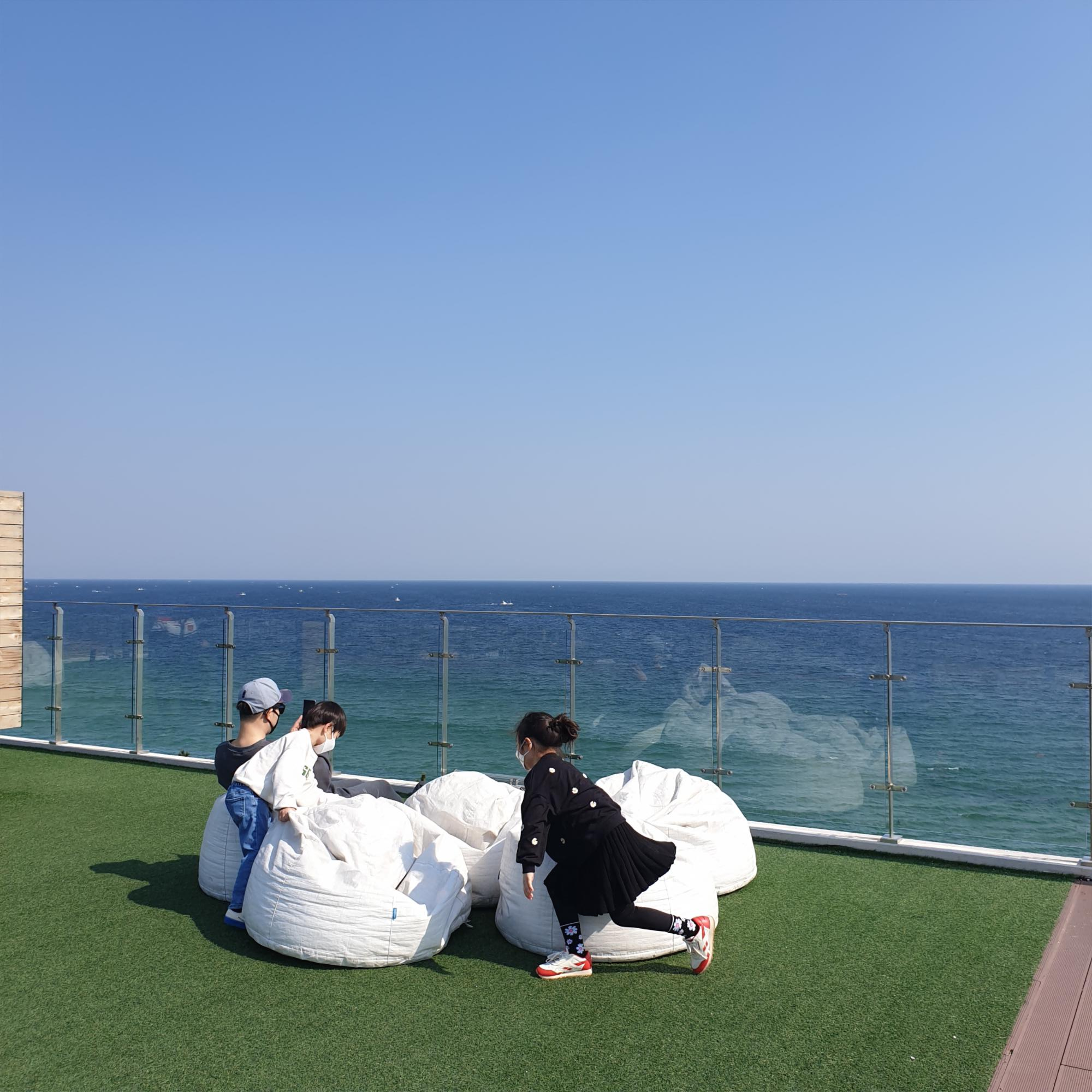 마당에 앉으면 철조망 바다 뷰이긴하지만