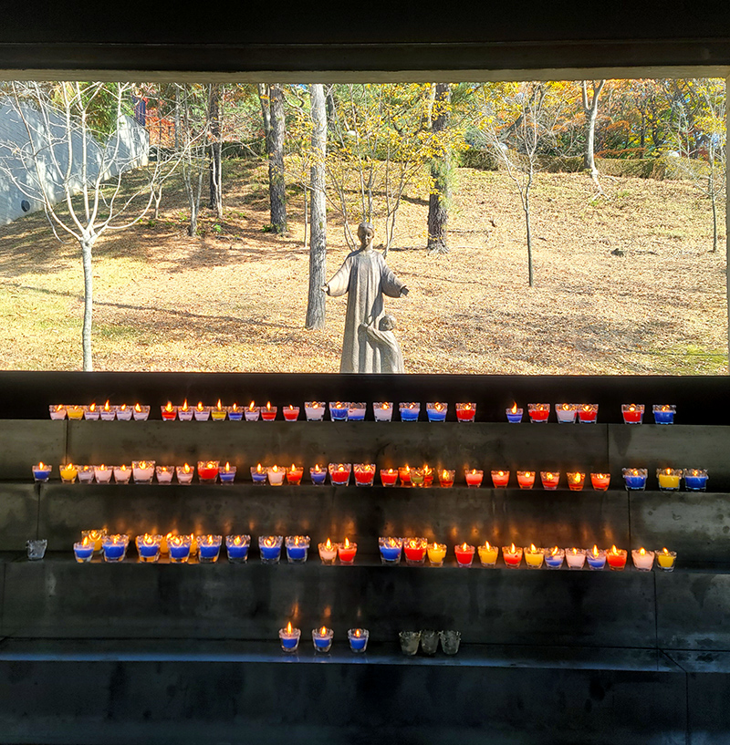 초를 켜두는 곳은 건물 안쪽으로 들어가 있고