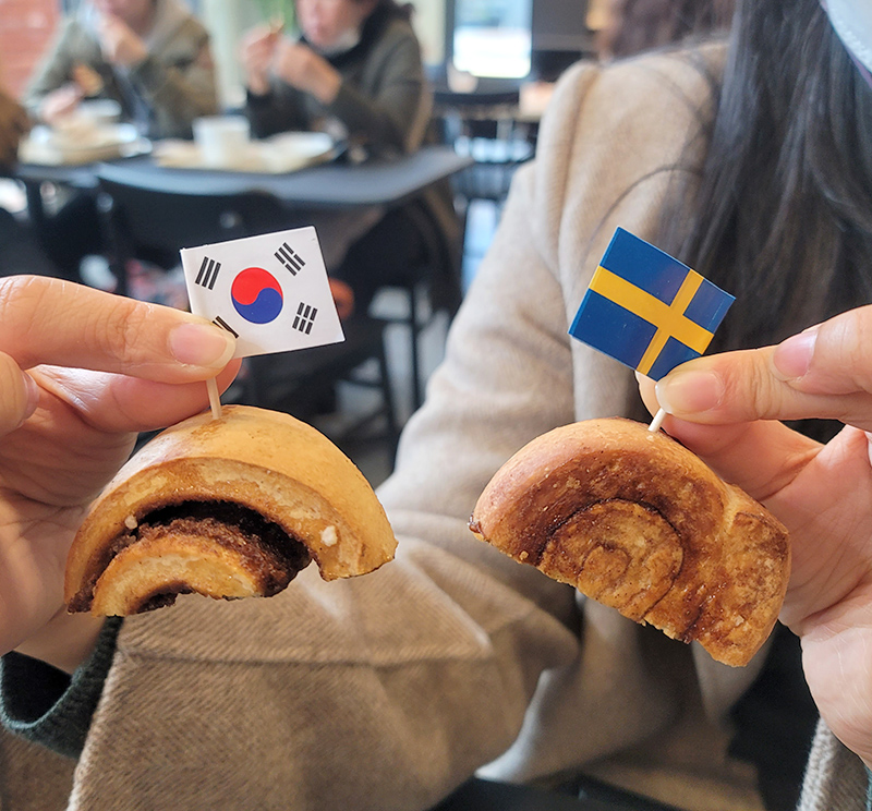 태극기와 스웨덴 국기가 꽂아져있는